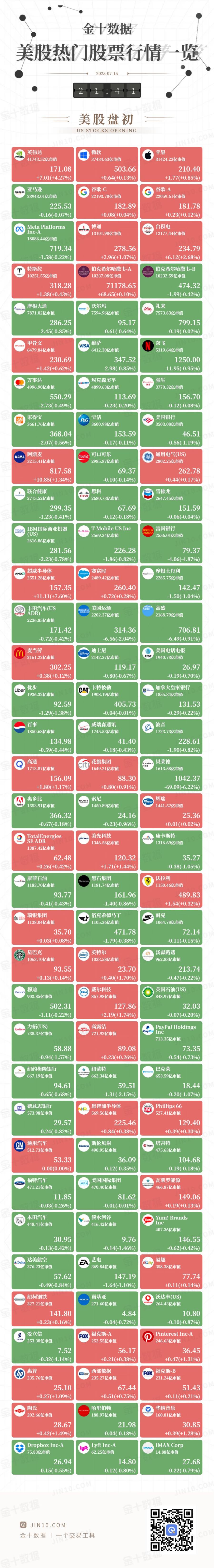金十图示:2025年07月15日(周二)美股热门股票行情一览(美股盘初)