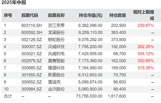基金投资策略 - 德邦高端装备混合基金成立于2024年3月14日 采用发起式设立 初始规模仅3000多万元[6] - 基金成立后迅速建仓 半个月内股票仓位超90% 重点押注人形机器人板块[1][6] - 二季度前十大重仓股更换5只 新增个股持仓增幅显著:雷赛智能持仓增330.85% 兆威机电增304.12% 隆盛科技增315.38% 汉威科技增262.26% 浙江泉泰增239.87%[2][3] 业绩表现 - 基金净值因板块调整大幅回撤 4月7日单日A类份额净值跌13.55% 三个交易日累计跌幅超20%[6] - 4月8日A类份额净值跌至0.7052元 成立不足一月亏损近30%[6] - 截至7月10日A类份额净值0.7811元 成立不足四月累计亏损超20% 跑输业绩比较基准14个百分点[7][8] 资金流动 - C类份额二季度出现巨额申购赎回 总申购2.945亿份 总赎回2.047亿份 呈现短期资金快速进出特征[9][12] - 期末基金份额总额显著分化:A类维持1570万份 C类激增至1.06亿份[12] 板块定位 - 基金持续聚焦人形机器人创新机遇 重点布局灵巧手、大小脑及新型传感器等"卡脖子"环节[5] - 持仓组合集中度高 前十大重仓股合计持仓市值7375万元 占股票资产超90%[3][5]