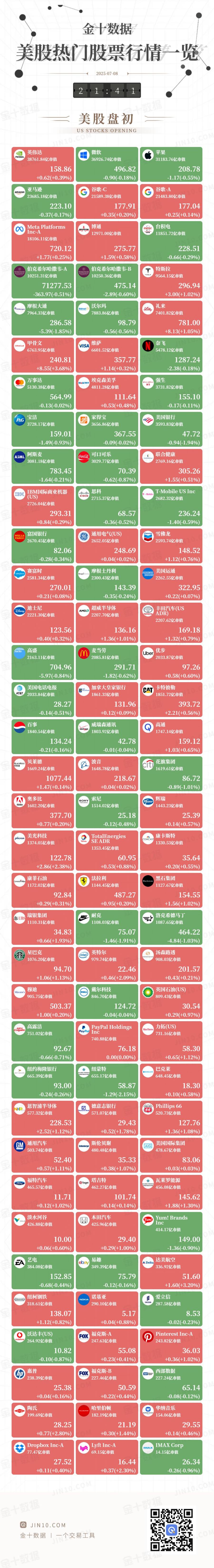 金十图示:2025年07月08日(周二)美股热门股票行情一览(美股盘初)