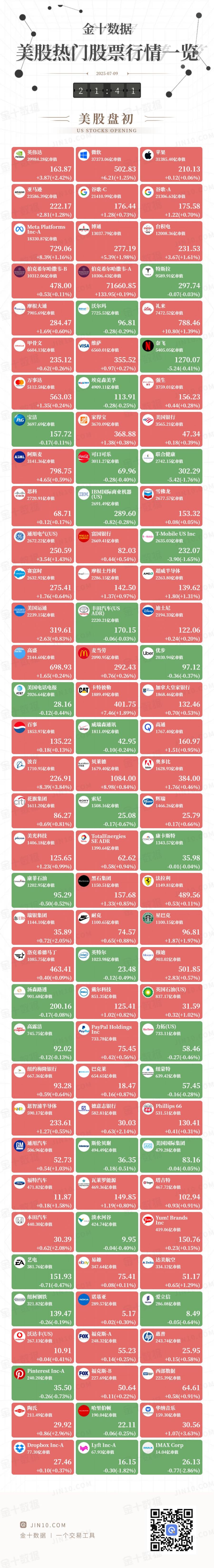 金十图示:2025年07月10日(周四)美股热门股票行情一览(美股盘初)
