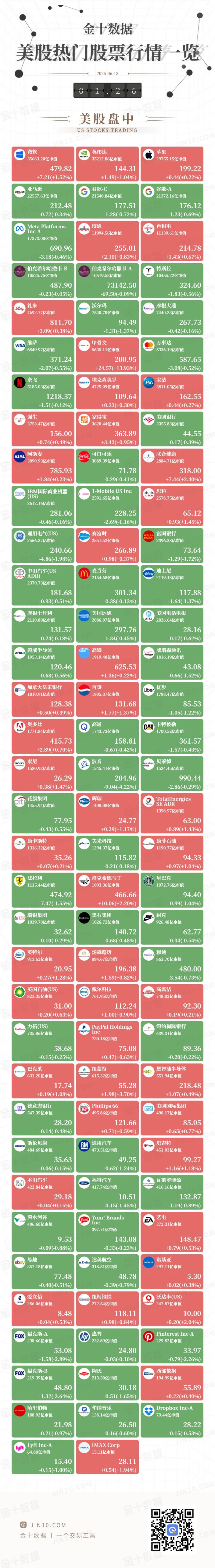 金十图示:2025年06月12日(周四)美股热门股票行情一览(美股盘中)