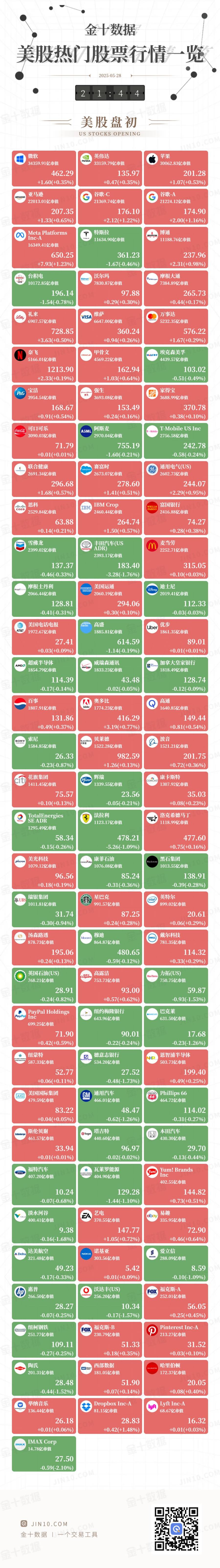 金十图示:2025年05月23日(周五)美股热门股票行情一览(美股盘初)