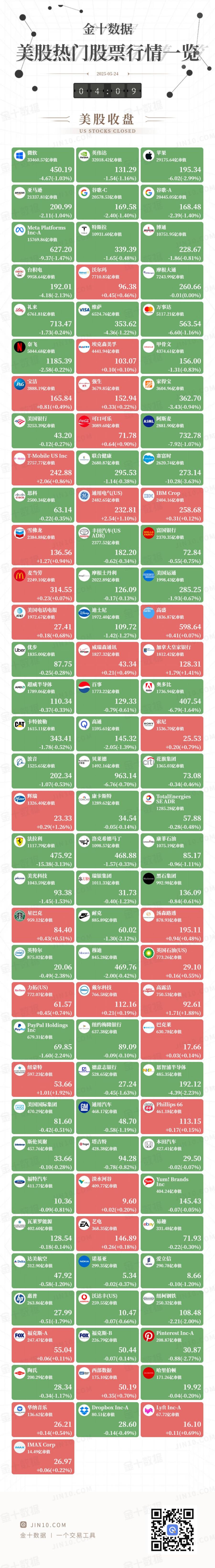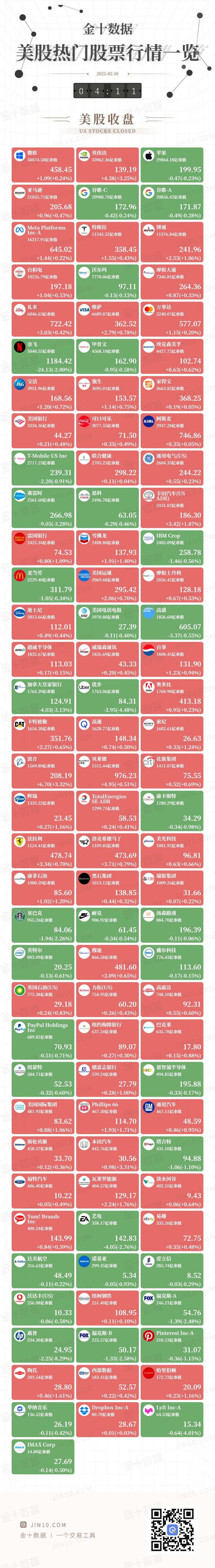金十图示:2025年05月23日(周五)美股热门股票行情一览(美股收盘)