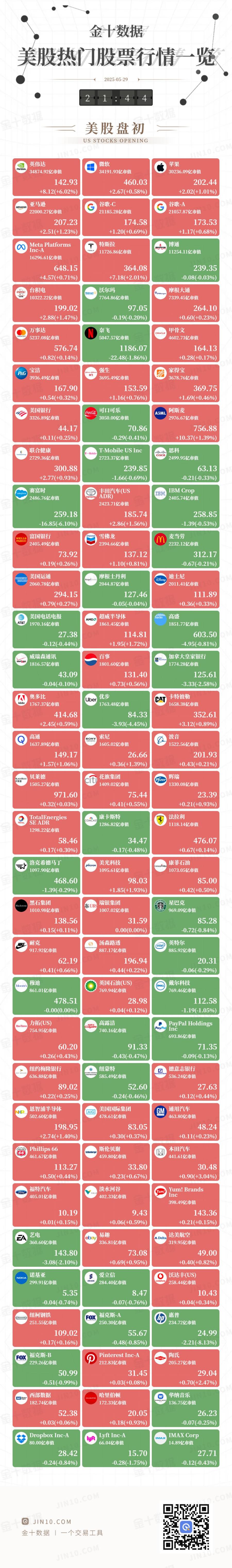 金十图示:2025年05月29日(周四)美股热门股票行情一览(美股盘初)