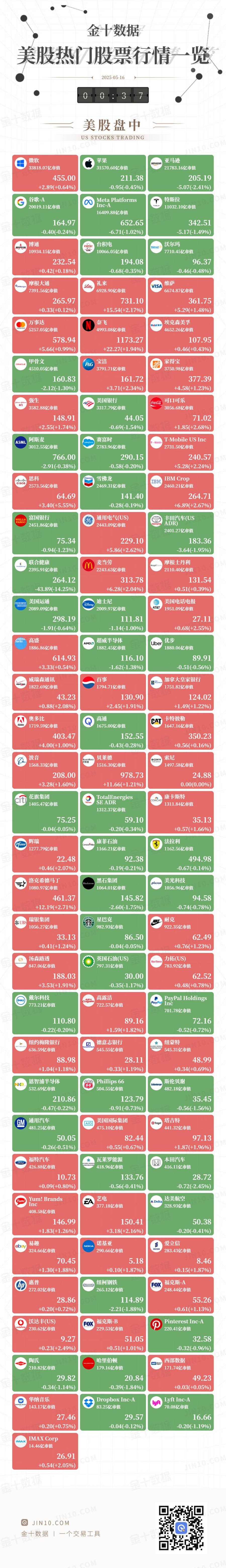 金十图示:2025年05月15日(周四)美股热门股票行情一览(美股盘中)