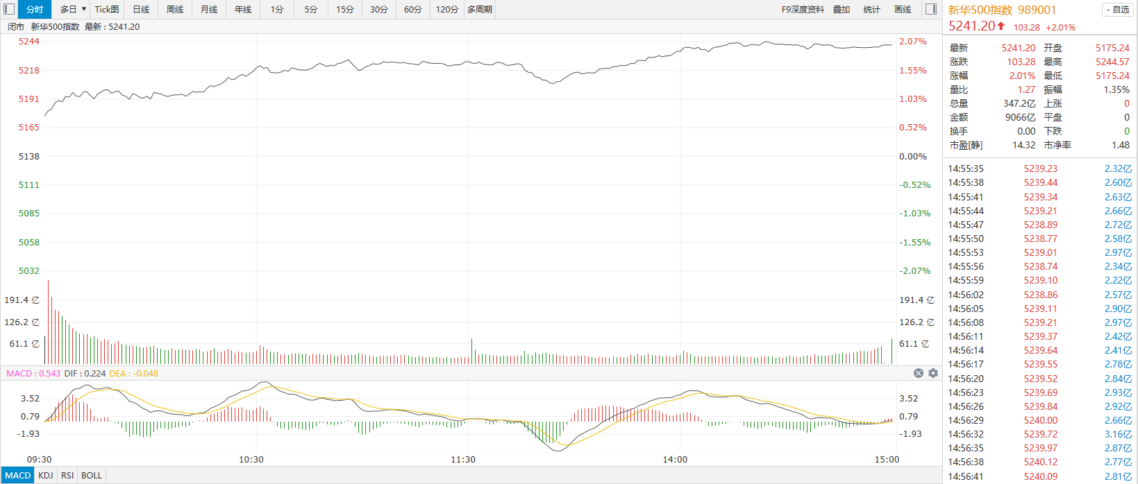 新华500指数市场表现 - 新华500指数1月5日收盘报5241.20点,单日上涨2.01% [1] - 指数当日早间高开,随后震荡走高,午后涨幅扩大,最终大幅收涨 [3] - 指数盘中最高触及5244.57点,最低触及5175.24点 [3] 市场交易情况 - 指数成分股全天总成交额达9066亿元,成交额较上一交易日显著增加 [3] 成分股表现分化 - 乐普医疗、中微公司、高德红外、盐湖股份等成分股涨幅居前 [3] - 迈为股份、浦发银行、中国中免、中国海油等成分股跌幅靠前 [3]