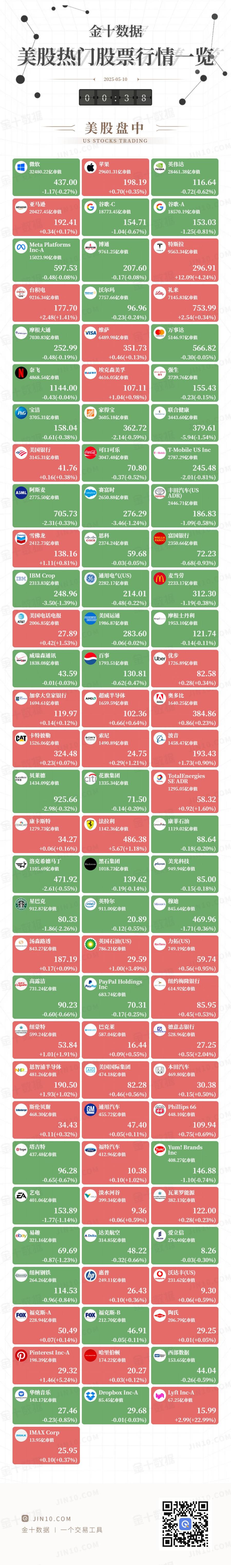 金十图示:2025年05月09日(周五)美股热门股票行情一览(美股盘中)