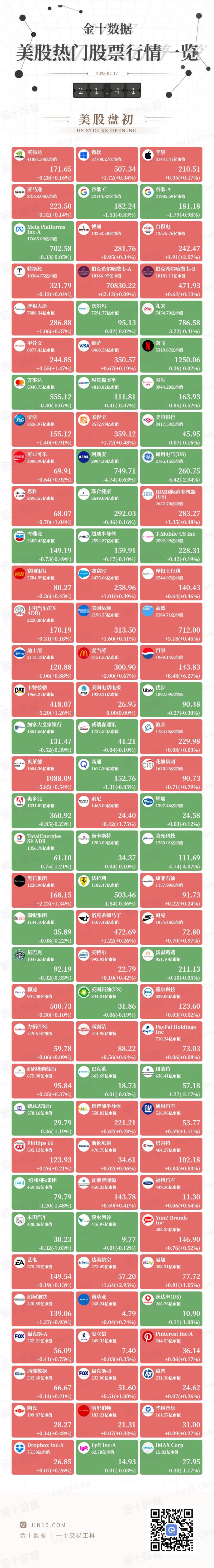 金十图示:2025年07月17日(周四)美股热门股票行情一览(美股盘初)