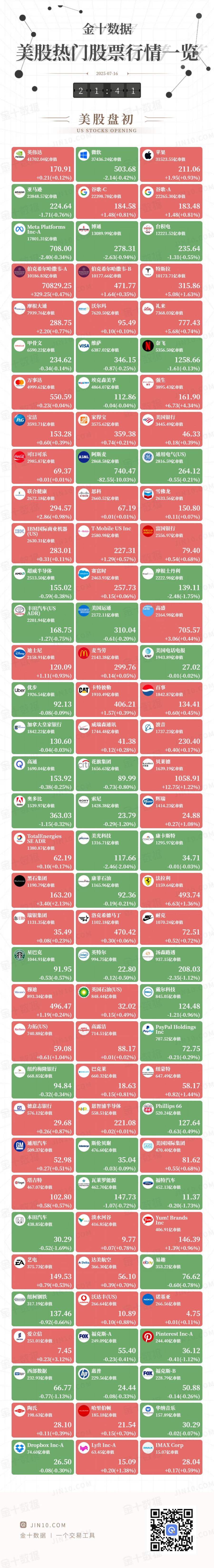 金十图示:2025年07月16日(周三)美股热门股票行情一览(美股盘初)