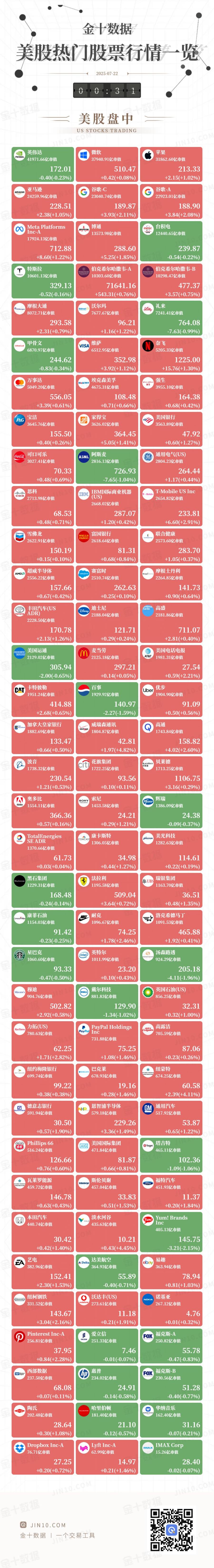 金十图示:2025年07月22日(周二)美股热门股票行情一览(美股盘中)