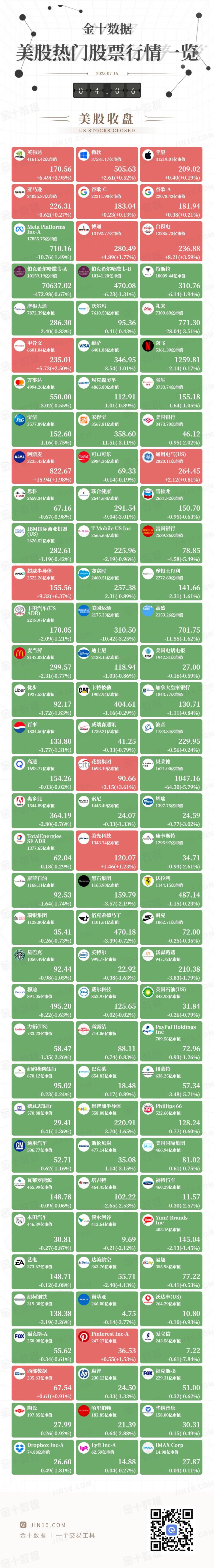 金十图示:2025年07月15日(周二)美股热门股票行情一览(美股收盘)