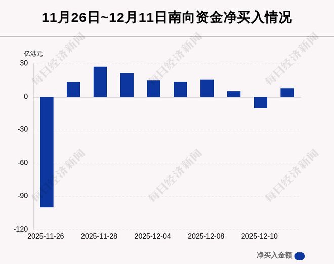 据统计,南下资金已连续10日净买入小米,共计84.0743亿港元;连续4日净买入农业银行,共计13.4172亿港元。 连续3日净卖出中芯国际,共计9.7263亿港元。 北水关注个股 美团、阿里巴巴:消息面上,摩根士丹利指出,随着国家市场监管总局总局近日出台了《外卖平台服务管理基本要求》后,预计外卖竞争将在第三季度达到 顶峰,阿里和美团均承诺确保行业内理性竞争。大摩表示,这是在市场监管总局7月就"反内卷"与平台企业召开会议之后的又一举措,并进一步强化了大摩 的观点,即竞争在今年第三季度见顶,并将从第四季度开始逐渐趋缓。 12月11日,南下资金净买入港股7.91亿港元。其中,港股通(沪)成交净卖出3.2亿港元,港股通(深)成交净买入11.11亿港元。 净买入美团-W 12.79亿、小米集团-W 10.09亿、贝壳-W 6.47亿、农业银行3.48亿; 净卖出中国海洋石油5.17亿、阿里巴巴-W 4.17亿、中芯国际4.03亿、中兴通讯3.58亿、华虹半导体2.57亿、建设银行1.96亿、腾讯控股1.15亿。 | -50 | | | | | | --- | --- | --- | --- | --- | | -10 ...