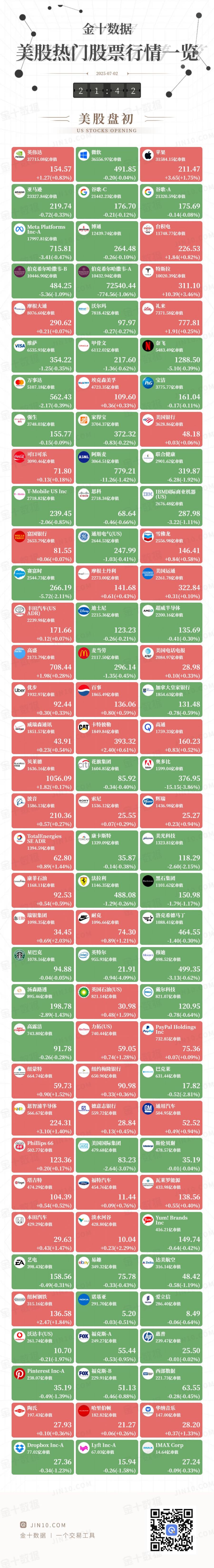 金十图示:2025年07月02日(周三)美股热门股票行情一览(美股盘初)