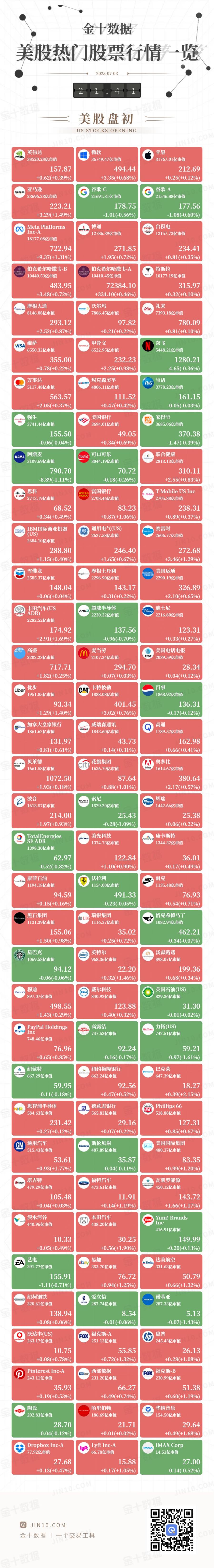 金十图示:2025年07月03日(周四)美股热门股票行情一览(美股盘初)