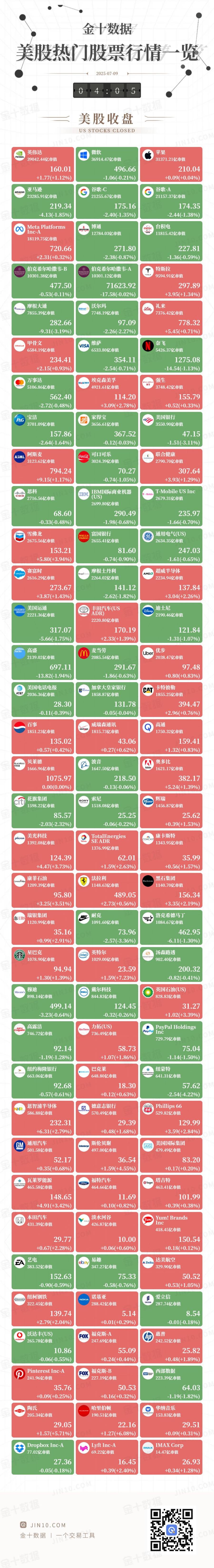 金十图示:2025年07月09日(周三)美股热门股票行情一览(美股收盘)