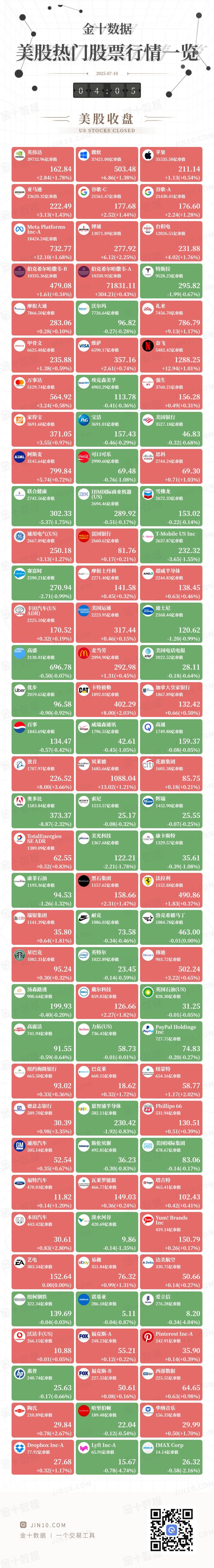 金十图示:2025年07月08日(周二)美股热门股票行情一览(美股收盘)