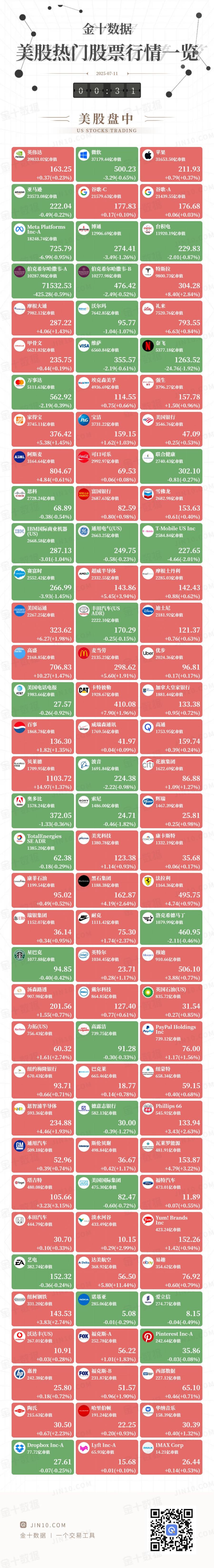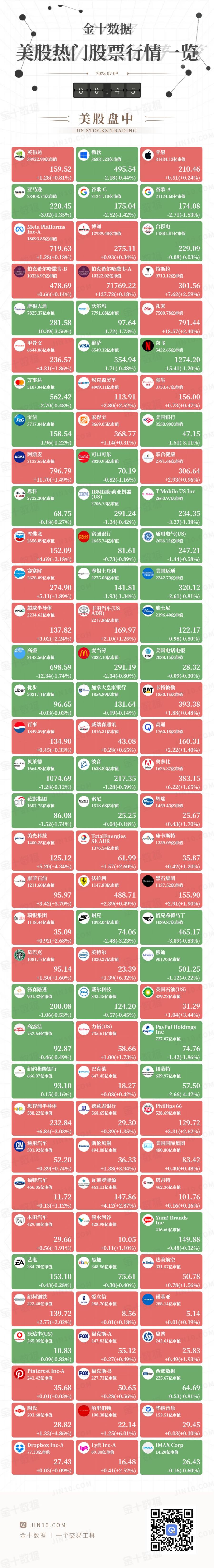 金十图示:2025年07月10日(周四)美股热门股票行情一览(美股盘中)