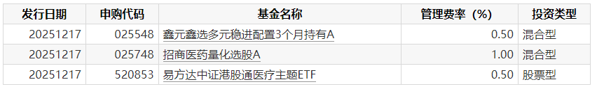 四、12月17日基金分红一览 (1)12月17日新发基金共有5只,主要为基金中的基金(FOF)基金和混合型基金,其中鑫元鑫选多元稳进配置3个月持有期 混合(FOF)A募集目标金额达50.00亿元;基金分红24只,多为债券型,派发红利最多的基金是前海开源沪深300指数型证券 投资基金,每10份基金份额派发红利2.5000元。 (2)2025年行情进入收官阶段,量化私募全面回暖。数据显示,截至11月底,股票量化多头策略年内平均超额收益达 17.25%,行业管理规模同步攀升,已接近历史高位。业内人士指出,从因子挖掘、组合优化到交易执行,AI技术正深度嵌 入量化全流程,显著放大策略容量与迭代速度,竞争格局被重新书写;随着性能持续提升,头部机构有望借助技术红利进 一步巩固领先优势,行业集中度或继续抬升。 (3)临近收官,2025年新基金发行节奏图浮出水面:下半年募集周期较上半年显著压缩,平均认购天数明显减少,"日光 基"数量大幅增加。业内人士指出,市场氛围回暖、资金配置需求集中释放,为发行提速提供土壤,基金公司顺势缩短募集 期、加快建仓,抢占年末配置窗口,预计这一趋势有望延续至明年春季。 三、12月17日新发基金一览( ...