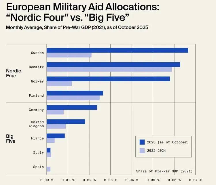 德国基尔世界经济研究所 11 日发布最新报告称:欧洲在 2025 年新增的军援承诺不足以弥补美国的削减, 如果趋势不变,2025 年将成为俄乌全面战争以来西方军援承诺最低的一年。 不过,约翰逊说的这个数据肯定是保守了,因为这并不加上欧洲买的那些中间商的石油天然气,而实际 上,那是俄罗斯的。 欧洲明里暗里攻击川普是张伯伦第二,但张伯伦是欧洲政客,卖的是欧洲国家,而川普是美国总统,和欧 洲隔着大西洋,欧洲自己对战争不着急,非要让美国总统把这当成自己的家务事。 很明显的是,欧洲确实用对俄罗斯的狠话,绝不让乌克兰妥协来证明自己的政治正确和川普卖乌的龌龊, 但狠话办不了任何事,相反的是,正是它的无数谴责,无数声明宣言,让它早就对俄罗斯失去了任何威慑 力,哪怕它的GDP是俄罗斯的10倍。 这家智库给出的数据显示,2022–2024 年,各国对乌克兰的年度平均军援承诺约为 416 亿欧元;而 2025 年 迄今只承诺了 325 亿欧元,尚缺 91 亿欧元 才能跟上前三年的水平。 研究员塔罗·西尼卡瓦指出:"法德英的增长确实明显……但即使这样,它们相对北欧国家仍然偏低。而南 欧整体缩减,使欧洲内部负担进一步失衡。"南欧指的是 ...