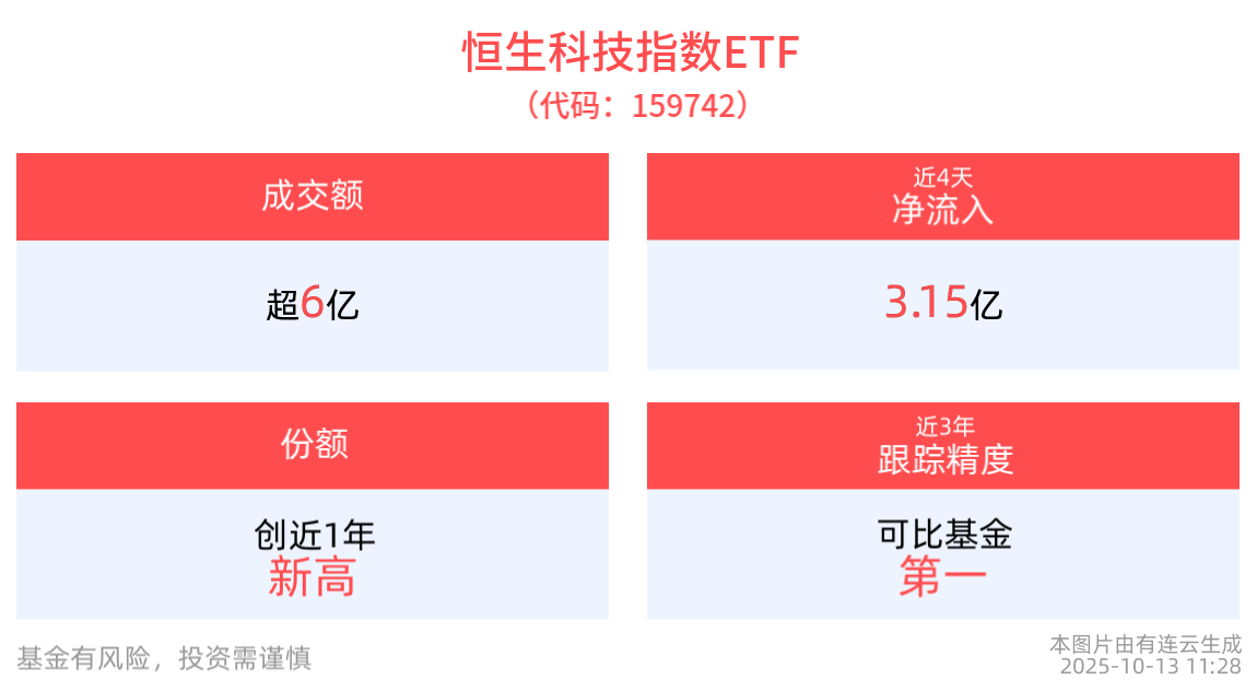 兴业证券观点认为,短期看,大国博弈时移势易,再现"TACO"概率高。板块方面,该机构表示,继续 战略性看多科技主线,利用震荡耐心抄底恒生科技。互联网龙头为代表的中国AI领域领头羊,有望迎 来内、外资共振做多。随着AI应用深化,投资者有望上调互联网龙头的长期盈利增长中枢,从而推 动"盈利预期上调"和"估值提升"的戴维斯双击。 公开信息显示,截至10月10日,恒生科技指数ETF(513180)标的指数最新估值(PETTM)为23.82 倍,处于指数发布以来约34.04%的估值分位点,仍处于历史相对低估区间,而高弹性、高成长等特性 使其具备更大的向上动能。没有港股通账户的投资者或可通过恒生科技指数ETF(513180)一键布局中 国AI核心资产。(场外联接A/C:013402/013403) 近期,外围扰动风波再起,或带来情绪上的短期冲击。但从当前各类资产跌幅来看,市场对于TACO交 易或存在较大期待。长江证券认为,本轮关税风波更像是政治表态而非实质政策,最终或将再度上 演"TACO(Trump Always Chickens Out)"。华西证券指出,战术"TACO"概率较高。 10月13日午后,港股三大指数继续 ...