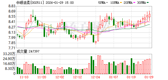 中顺洁柔:预计2025年净利润同比增长288.69%至327.56%