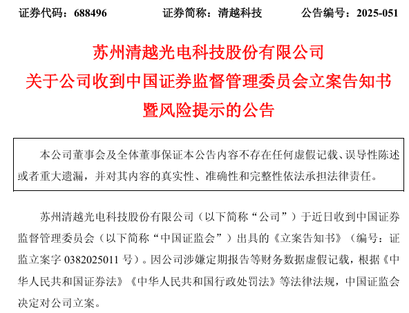 公司近期重大事件 - 公司于近日收到中国证监会出具的《立案告知书》,因涉嫌定期报告等财务数据虚假记载被立案 [1] - 若后续经中国证监会行政处罚认定的事实触及重大违法强制退市情形,公司股票将被实施重大违法强制退市 [3] - 目前公司各项经营管理、业务及财务状况正常,立案调查期间将积极配合中国证监会工作 [3] 公司2025年第三季度财务表现 - 公司第三季度实现营业收入1.47亿元,同比下降41.4% [3] - 公司第三季度归属于上市公司股东的净利润为亏损1258.85万元 [3] - 公司营业收入下降主要是报告期内电子纸模组销售较去年同期有所减少所致 [3] - 公司年初至报告期末营业收入为4.76亿元,同比下降13.64% [4] - 公司年初至报告期末归属于上市公司股东的净利润为亏损4335.34万元 [4] - 截至10月31日收盘,公司总市值为40.23亿元 [4] 公司业务背景 - 公司成立于2010年,是一家物联网终端显示整体解决方案的供应商,于2022年12月登陆科创板 [3] - 公司形成以PMOLED、电子纸与硅基OLED三大业务板块为主的多元化格局 [3] - 公司在江苏、浙江、江西等地建有研发中心和多条大规模生产线 [3] 行业监管动态 - 10月27日,证监会发布《关于加强资本市场中小投资者保护的若干意见》,提出加大对欺诈发行、财务信息披露造假等违法行为的打击力度 [6] - 对因重大违法而强制退市的公司,《若干意见》规定引导控股股东、实际控制人等主动采取先行赔付或其他措施保护投资者合法权益 [6]