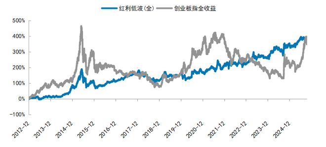 2013年初,如果你将目光投向A股市场的两大风格赛道——一边是被视为"老成持重"的红利低波指数, 另一边是被誉为"新经济引擎"的创业板指,恐怕很难想象,它们在经历了中国经济转型、市场牛熊更 迭、科技浪潮席卷的十三年后,会在2025年9月的某个平淡交易日,悄然交汇于同一收益水平线上。 图:红利低波指数与创业板指的长期累计收益比较(全收益) 数据来源:wind,截至2025年10月21日 这不是一句轻描淡写的统计结果,而是一个关于投资认知的隐喻,一场真实发生在你我身边的"龟兔赛 跑"。 被低估的"慢":红利资产为何总被遗忘在角落? 在多数人的心智图谱中,红利投资总带着几分"暮气"。它的成分股常被冠以"煤电油运"的标签,被认为 是增速见顶、缺乏想象空间的传统企业。它们不讲述改变世界的故事,不描绘百倍增长的蓝图,只有按 部就班的经营、稳定可持续的分红,以及一眼望得到头的业务模式。 于是,在舆论场中,红利成了那个"沉默的配角"。当市场被情绪点燃,当成长股带着AI、人形机器人、 固态电池的叙事冲锋陷阵,红利总是被遗忘在角落。它的"慢",被误读为"停滞";它的稳定,被曲解 为"平庸"。 但很少有人意识到:这种"慢",恰恰是 ...