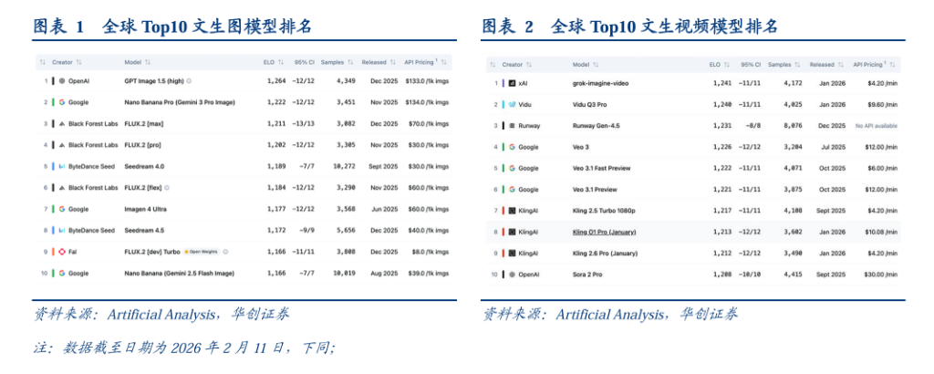 行业投资评级 - 投资评级为“看好”,并维持该评级 [9] 报告核心观点 - 近期AI视频赛道边际催化加速,关注多模态板块投资机会 [2][9] - 可灵3.0重磅更新,商业化进程有望再提速 [2][9] - 字节跳动发布Seedance 2.0,有望进一步压低实际制作成本,加速多模态商业化进程 [2][9] - 看好工具类公司快手及产能提升聚焦精品的制作端公司 [2][9] 可灵3.0更新要点总结 - 更新模型包括视频3.0、视频3.0 Omni、图片3.0、图片3.0 Omni等 [2][5][9] - 视频3.0模型支持文本/图像/视频片段等多种输入形式,单次视频时长最长突破10秒至15秒 [9] - 新增智能分镜功能,实现根据指令自动调整景别与机位 [2][9] - 升级主体一致性与音画同步能力,可实现多种语言精准口型匹配 [9] - 视频3.0 Omni支持创建视频主体特征库,可提取3-8秒视频中的角色形象与音色 [9] - 图片3.0新增组图生成能力,可批量生成逻辑连贯系列画面 [9] - 技术层面首次采用视觉思维链技术(vCoT) [9] - 2026年1月可灵单日环比上月增长30% [9] - 可灵AI出品的首部AI贺岁动画短篇集《马上有戏》第一集《马不停蹄》于2月6日上线以来点赞量破6万 [9] 字节跳动Seedance 2.0要点总结 - 已在即梦平台上线,支持会员用户直接使用 [5][9] - 支持图像、视频、音频、文本四种模态输入 [9] - 核心亮点包括支持自分镜自运镜、全方位多模态参考、音画同步生成、多镜头叙事等 [9] - 自分镜和运镜功能可根据用户描述的情节自动规划,大幅降低用户创作门槛 [9] - 最多可同时参考9张图片、3段视频和3段音频,参考内容涵盖动作、特效、形式、运镜、人物、场景、声音等 [9] - 生成视频的同时可生成匹配的音效和配乐,且支持口型同步和情绪匹配 [9] - 角色和场景一致性大幅提升,可生成包含多个镜头切换的完整叙事片段 [9] - 据测评其可用率已提升至90%,而行业平均不到20% [2][9]
