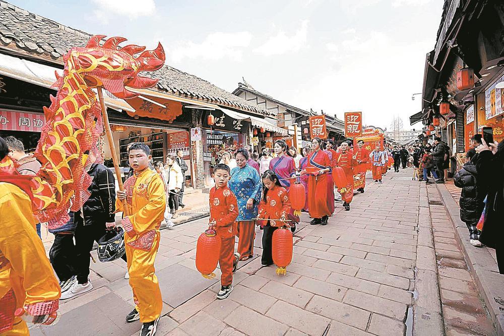 活动概述 - 2026年"我们的中国梦·文化进万家"成都市龙泉驿区"村晚"暨"民俗闹春"系列群众文化活动于2月11日在龙泉驿洛带古镇举行[1] - 活动主题为"民俗焕新·乐游洛带" 采取"民俗巡游+固定展演+互动体验"形式[1] - 活动将客家文化、非遗传承与新春欢庆融为一体 让群众在家门口共享文化惠民成果[1] 活动内容与形式 - 活动包含民俗巡游、非遗展演、村晚汇演、春联送福等环节[1] - 下午2点 民俗巡游在五凤楼广场启动 队伍包括客家少儿龙队、汉服民乐队、客家婚嫁队伍、鸡公车展示队、健龙队[1] - 巡游队伍沿途展演 省级非遗洛带客家龙舞气势昂扬 客家婚嫁习俗原汁原味[1] - 巡游结束后 万年台举行"村晚"区级示范展演 节目包括《张灯结彩》《洛带民谣》《红灯笼》等 涵盖舞蹈、歌曲、戏曲、非遗表演[1] - 现场设置非遗知识互动问答 市民踊跃参与[1] - 五凤楼广场同步开展"墨香暖春·福赠万家"春联送福活动 书法爱好者现场书写春联与福字赠予市民[2] 活动反响与意义 - 活动让千年客家古镇变身新春欢乐海洋 市民游客沉浸式感受非遗魅力与浓浓年味儿[1] - 传统民俗与现代活力相映成趣 节目被评价为接地气、有年味、聚人气[1] - 活动吸引了各地游客前来打卡 例如从武侯区专程前来游玩的一家三口表示活动特别热闹开心 春节氛围浓 带孩子感受传统民俗很有意义[2]