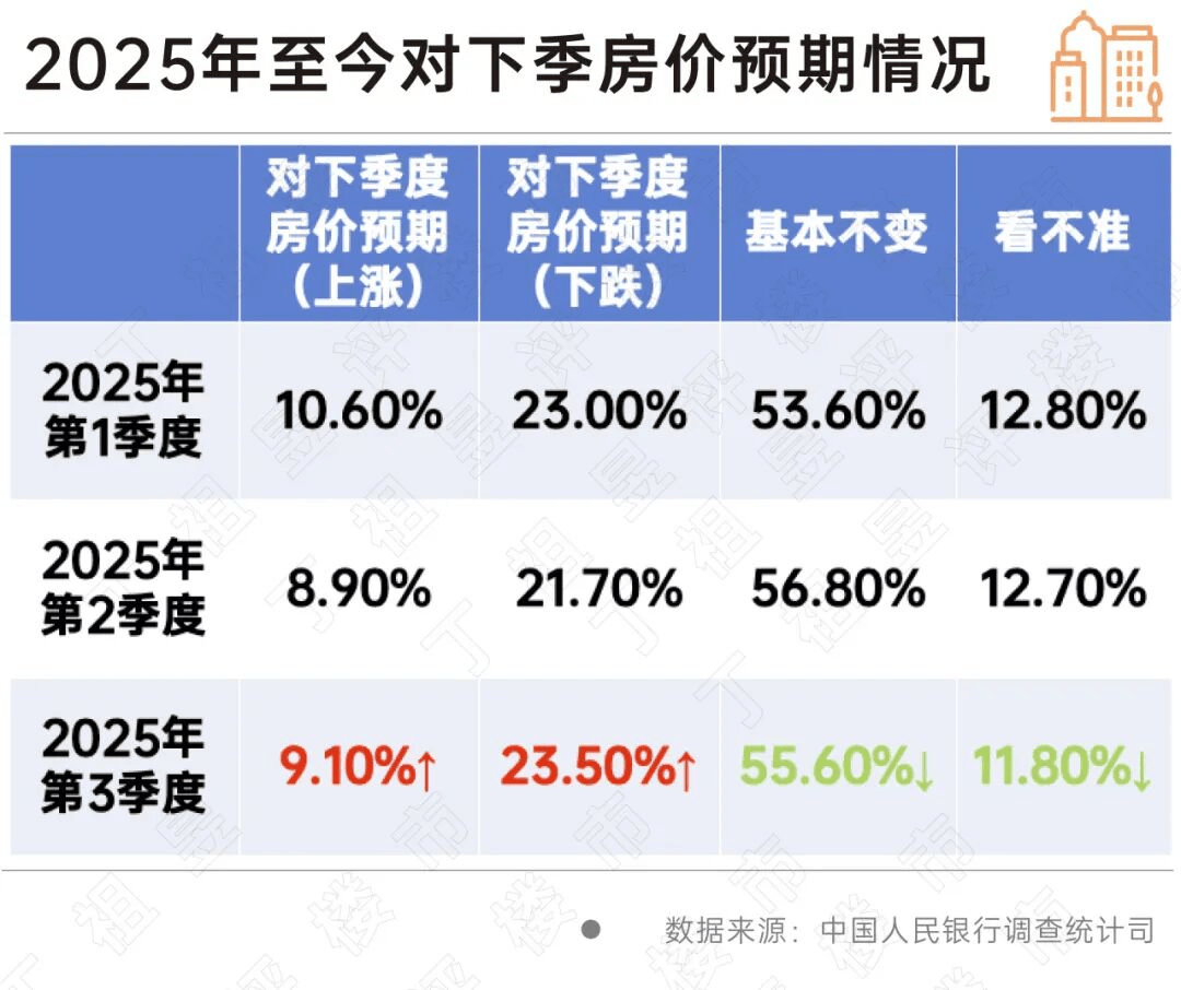 9成人不相信房价还会涨,房子还能买吗? 最近,央行发布了一份覆盖全国50个城市2万个储户的调查报告,2025年第三季度,只有9.1%的居民预期房价会"上涨"。而预期下跌的占比23.5%,远高过 看涨的。 需要注意的是这是央行的调查报告,而不是什么野生机构的报告,所以,权威性肯定没问题。 这几年,房地产市场跌入低谷,房价成为了一个敏感话题,毕竟信心比黄金重要。但现在央行都出来说不到10%的人看涨,无疑传递了很强的信号。 实际上,前段时间,央行原副行长朱民在接受央视采访时,被问道"房子还有可能再涨起来吗?朱民就直接回答"很难。"原因是人口老龄化和人均住房面积 很高。 其实,房价还会不会涨,就看一点,有没有市场需求。无论什么行业,都是看供需关系。过去买房的主要是两类人,一类是"被迫买房",也就是丈母娘经 济,结婚必须买房。所以,很多年轻人即便掏空父母的钱包,也得买房。 结果没想到都砸在自己手里了,前几天,看到《经济观察报》发了一篇文章,说现在不是买不起房,而是卖不起房。一些人因为工作变动,收入降低,无力 承受每月的房贷,于是就打算把房子卖掉,结果根本卖不出去。即便想卖,也只能打很低的折扣,结果卖房款都不够还房贷,还 ...