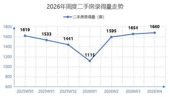 市场成交量表现 - 2026年第4周深圳市二手房(含自助)共计录得1,680套,环比增长1.6% [1] - 市场进入稳步回升通道,二手房录得量已连续3周保持上升趋势 [1] - 单周录得量再次突破1,600套 [1] 市场供需与趋势 - 从需求端(委买合同)来看,市场新增需求量小幅上升,本周环比增长3.3% [3] - 结合二手录得量持续走高,表明当前市场供需两端均呈现回暖态势 [3] - 后续成交量有望延续稳中有升的走势 [3]