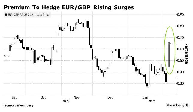 核心观点 - 近期英镑因英国央行货币政策分歧与国内政治动荡而遭遇双重利空冲击 汇率承压下行 对冲基金在期权市场大幅增持看空头寸 加剧了其下行压力与市场波动性 [1][3] - 尽管英镑短期出现技术性反弹 但机构普遍预测其兑欧元和美元将进一步走弱 未来市场走势将密切关注美国经济数据与英国政治局势的发展 [3][4] 市场表现与数据 - 2月5日 英镑对欧元和美元汇率跌至两周低点 [1] - 美国存托信托与清算公司数据显示 2月5日未来一个月英镑对欧元的下跌对冲溢价较上涨对冲溢价大幅攀升 创下去年11月末以来最高水平 [1] - 同日 欧元兑英镑期权交易量刷新年内峰值 其中押注英镑走弱的看涨期权交易量较押注英镑升值的看跌期权高出50% [1] - 法国兴业银行指出 资金流入欧元兑英镑期权市场的趋势呈现一边倒态势 大量资金涌入看涨期权 [1] - 加拿大皇家银行资本市场指出 市场对欧元兑英镑的看涨期权需求旺盛 推高了该货币对的隐含波动率至显著更高水平 [3] 机构分析与预测 - 高盛策略师预测 未来12个月英镑兑欧元将进一步下跌6% [3] - 野村控股预计 截至4月末英镑兑欧元跌幅将达3% [3] - 荷兰合作银行外汇策略师Jane Foley认为 若美元未出现新一轮大幅抛售 欧元兑英镑汇率有望在年中前小幅走高 英镑兑美元则将持续下行 [3] - 法国兴业银行全球外汇期权交易主管Thomas Bureau指出 受美元走强及市场对地缘政治消息高度敏感影响 英镑已显现出新兴市场式的波动特性 [1] 影响因素分析 - 货币政策因素:2月5日英国央行利率决议中 支持降息的票数仅以一票之差未获通过 [1] - 政治因素:同日 英国首相基尔斯塔默的幕僚长因反对任命彼得曼德尔森为驻美大使宣布辞职 其执政危机进一步升级 令英镑承压 [1][3] - 加拿大皇家银行资本市场指出 早在英国央行公布利率决议前 斯塔默摇摇欲坠的执政地位就已令英镑承压 [3] - 荷兰合作银行表示 市场原本预计斯塔默的执政地位将在5月地方选举后面临挑战 而如今这场挑战可能提前到来 市场将对英国的政治动荡保持高度警惕 [3] - 历史表现:英镑去年对欧元的跌幅已超5% [3] 后续展望 - 英镑在周五对欧元和美元均出现反弹 这表明其下行路径或非一帆风顺 [4] - 美国非农就业数据和通胀数据料将成为短期市场风险事件 [4] - 政治层面的消息仍将是影响英镑走势的核心驱动因素 [4]