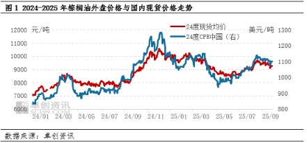 棕榈油现货价格在7、8月连续上涨后,随着市场利多因素出尽,9月现货价格震荡回调。但马来西亚棕 榈油基本面偏紧预期抑制价格跌幅。 展望10月份,整体预计在基本面支持下10月棕榈油现货价格或震荡偏强,短时需关注节后马来西亚棕榈 油局(MPOB)报告落地情况。 9月棕榈油市场在前期利多因素消化后,价格高位偏弱调整。然而在产地"供弱需强"格局的支撑下,主 产国挺价意愿较强,报盘延续高位。截至9月30日,当月内24度棕榈油CFR中国参考价格为1106美元/ 吨,完税后平均进口成本约9438元/吨,环比8月微跌0.24%。国内方面,24度棕榈油现货月均价为 9378元/吨,环比下跌0.17%。整体来看,月内进口成本仍处高位,一定程度上抑制现货跌幅。 分析来看,虽然全球最大的棕榈油进口国印度对棕榈油的进口量在8月达到峰值后逐步回落,然而,供 应端正逐渐成为棕榈油市场坚挺的主要驱动因素。具体来看,当前市场预计9月印度棕榈油进口量可能 降至约83万吨,需求端对棕榈油价格的支撑作用正在减弱。但在供应端,虽然按照季节性规律,每年3 月至10月是棕榈油的传统增产周期,产量通常在10月达到年内高点。但今年9月,马来西亚主产区受到 强降 ...