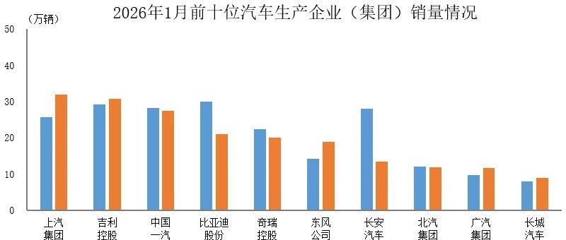 数据简报 | 2026年1月前十位汽车生产企业(集团)销售情况简析