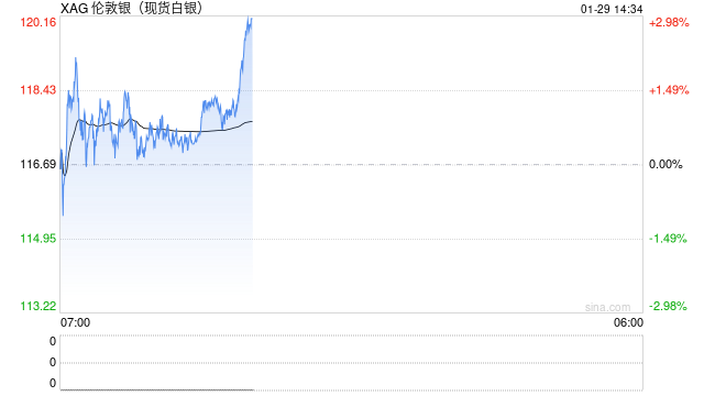 每经AI快讯,1月29日,现货白银突破119美元/盎司,再刷新高,日内涨1.98%。 每经AI快讯,1月29日,现货白银突破119美元/盎司,再刷新高,日内涨1.98%。 ...