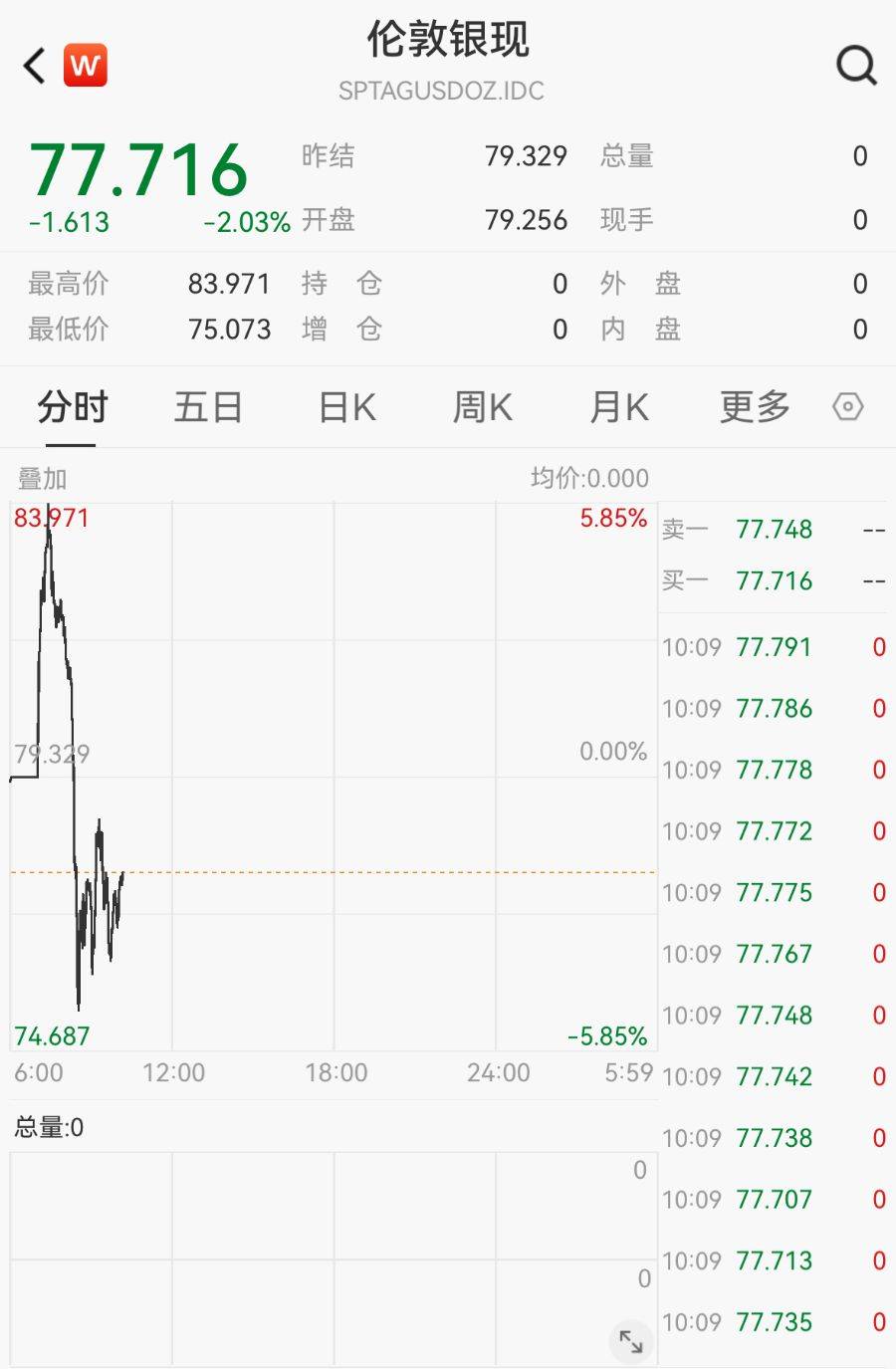 来源:21世纪经济报道 12月29日早盘,现货白银价格一度突破83美元/盎司,涨幅近6%,随后快速跌落至75美元附近,维持窄幅震荡走势。截至 10:09,跌2.03%,报77.72美元/盎司,年内涨超160%,显著跑赢黄金涨幅。 中辉期货提醒,当前白银已进入严重超买区间,后续或快速回调释放压力,或通过高位横盘缓慢消化涨幅。然而,这并不等于 牛市结束,因为支撑贵金属长期上涨的逻辑并未改变——美联储降息周期开启、全球央行购金持续、地缘风险升温以及对货币 信用的长期担忧。 | < W | 伦敦银现 | | | | | O | | --- | --- | --- | --- | --- | --- | --- | | | SPTAGUSDOZ.IDC | | | | | | | 77.716 | | 昨结 | 79.329 总量 | | | 0 | | -1.613 | -2.03% 开盘 | | 79.256 现手 | | | 0 | | 最高价 | | 83.971 持 仓 | 0 | 外 盘 | | 0 | | 最低价 | 75.073 | 增 仓 | 0 | 内 盘 | | O | | 分时 | 五日 日K ...