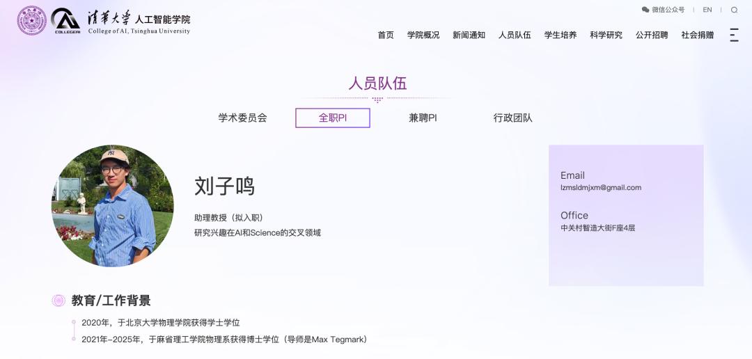 KAN一作刘子鸣回国任教,清华官网盖章认证了