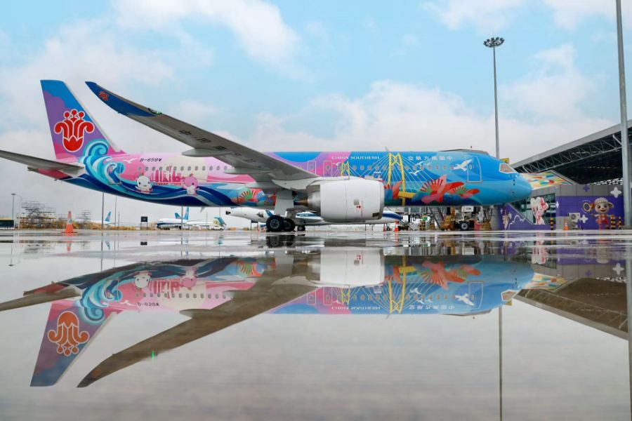 广州白云机场起飞!国内首架C919全运会主题彩绘机首航