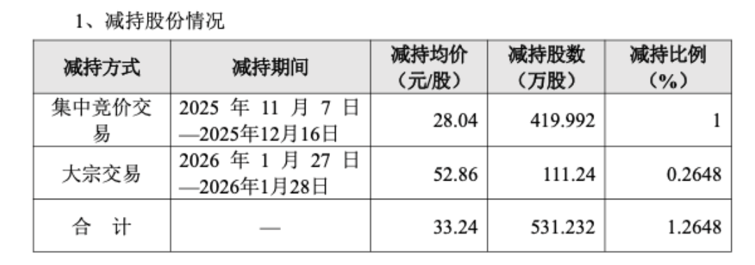 弘讯科技公告称,2026年1月26日至1月28日,控股股东一致行动人宁波帮帮忙贸易有限公司通过集中竞 价减持285.33万股,占公司股份总数0.71%。权益变动后,其与一致行动人合计持股比例由52.71%降至 52.00%,触及1%刻度。本次减持是履行2025年12月31日披露的计划,未实施完毕,不触及要约收购, 不会导致控股股东和实控人变更,也不影响公司经营。 ...