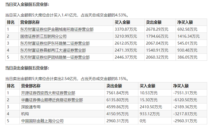 作者丨叶映橙 见习记者王达毓 编辑丨刘巷 11月4日,福建板块掀起涨停潮,其中海峡创新(300300.SZ)、中能电气(300062.SZ)、招标 股份(301136.SZ)等"20cm"涨停,平潭发展(000592.SZ)再度涨停, 录得三连板、13天10板 的记录 。 | 排名 | 营业部名称 | 卖出金额 | 买入金额 | 净买入额 | | --- | --- | --- | --- | --- | | 1 | 开源证券西安西大街证券营业部 | 7561.84万元 | 10.53万元 | -7551.31万元 | | 2 | 华鑫证券佛山顺德近良路证券营业部 | 6135.80万元 | 15.30万元 | 6120.50万元 | | 3 | 深股通专用 | 4599.86万元 | 2410.50万元 | -2189.36万元 | | 4 | 机构 | 4150.95万元 | 933.12万元 | -3217.83万元 | | ા રે | 中国国际金融上海分公司 | 2960.31万元 | 0元 | -2960.31万元 | 平潭发展大幅上涨,交易所将其纳入重点关注。 根据平潭发展11月3日公告,公司股 ...