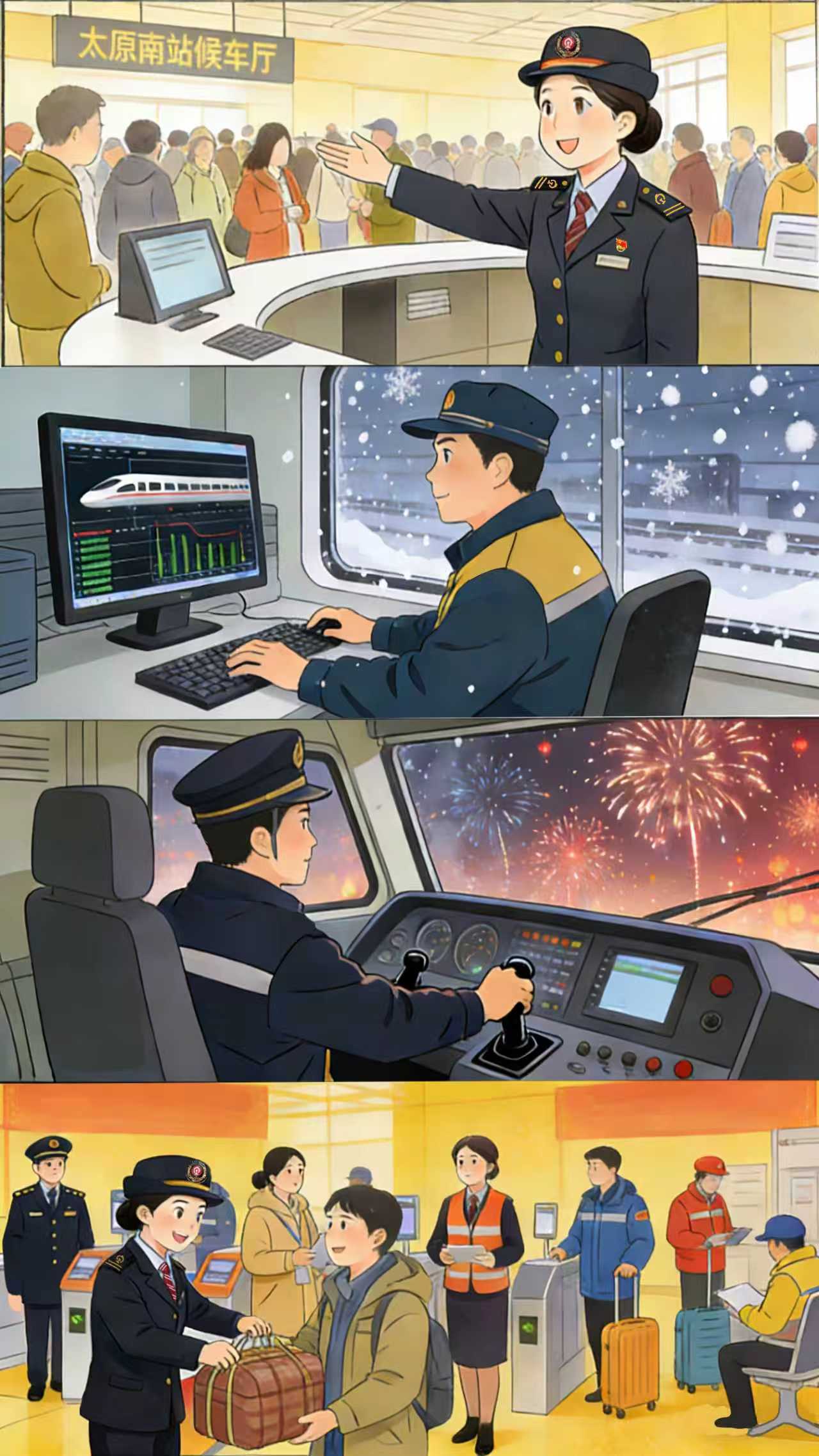 铁路行业春运运营与服务 - 铁路部门在春运期间织密路网根基,精细服务守护平安归途,确保列车准点出发并提供温暖帮扶 [3] - 太原南站“李静导购台”通过“缓、简、速、唱、全”五字心诀及“微锦囊”手册、电话订餐等服务,为老年合唱团、研学团队、俄罗斯芭蕾舞团等各类群体提供细致服务 [3] - 全国200万铁路职工在春节期间坚守岗位,保障铁路大动脉安全畅通,护航客运归途 [4] 铁路货运与能源保供 - 大秦铁路在春节前进入电煤保供繁忙时刻,重载列车昼夜穿梭,将万吨煤炭源源不断东运,筑牢新春能源保供屏障 [4] - 大秦铁路通过智能检车、机械臂作业、无人化工具室等数智化与科技创新手段,将传统“人拉肩扛”作业模式转变为“智能管控”的现代化运维场景 [4] - 铁路货运从关键技术国产化到辅助驾驶智能化,以科技之力筑牢能源保供防线 [4] 铁路职工奉献精神 - 铁路职工在客运一线护送归程,在货运干线勇担重任,以匠心守初心,践行“人民铁路为人民” [3] - 万千货运职工坚守岗位一线,用心守护“钢铁筋络”,为温暖过年提供坚实保障 [4] - 铁路职工舍小家、为大家,将个人微光汇入时代洪流,用责任与奉献点亮万家灯火 [4]