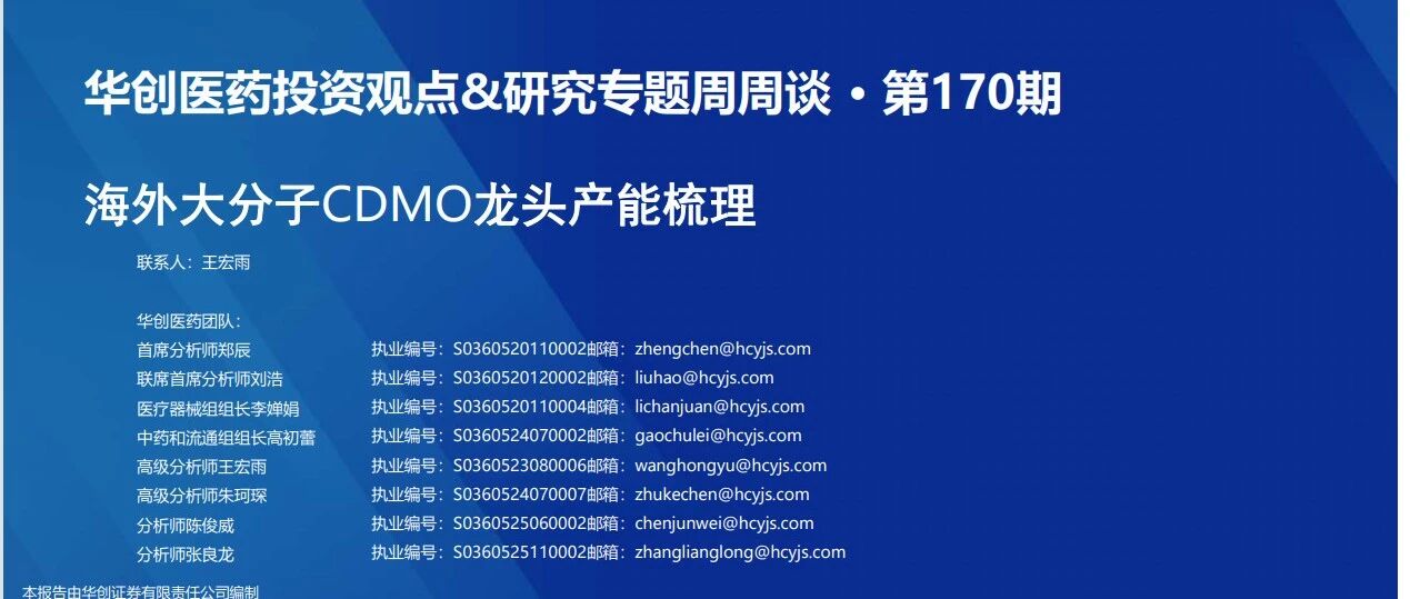 华创医药周观点:海外大分子CDMO龙头产能梳理 2026/04/12