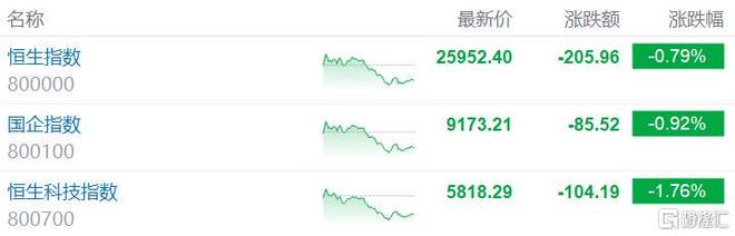 港股收评:恒指跌0.79%,大型科技股、黄金股集体下跌,内银股逆势活跃