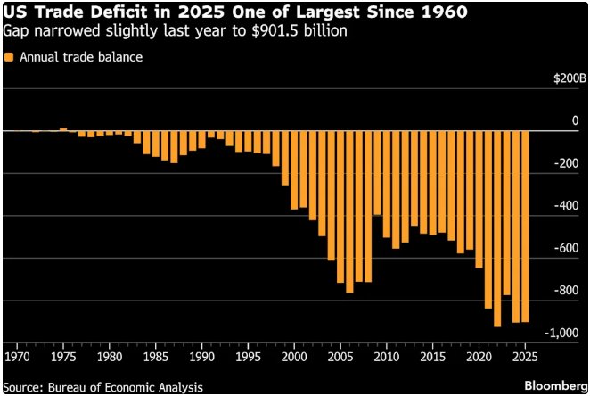 疯狂加关税,结果美国2025年贸易逆差创下新高