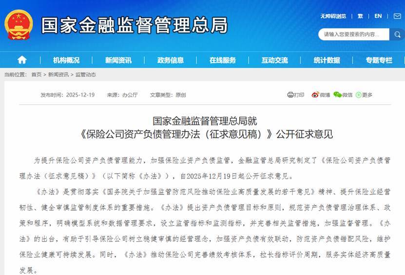 引导险企强化资产负债管理!金融监管总局拟设立多项监管指标