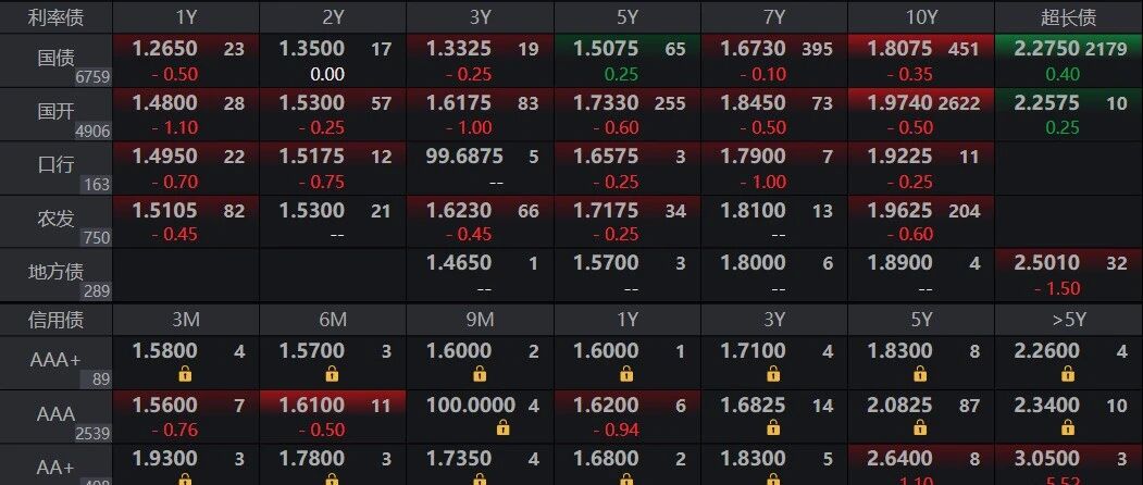 市场整体表现与情绪 - 市场价格的波动由多数人的行为决定 个体感受难以影响市场 [1] - 股市与商品市场继续走强 债市表现相对平淡 [4][6] - 商品市场呈现“暴力美学” 黄金价格从4400元大幅冲高至5100元 [7] - 股票市场呈现“心跳加速” 上证指数从昨日回踩4000点上涨至站上4100点 [7] - 债券市场表现沉闷 被形容为“熊样打扮” 市场波动极小 [7] 债券市场动态 - 资金面均衡偏松 长债收益率微幅上行 [4] - 央行公开市场净回笼3025亿元 当日开展750亿元逆回购操作 有3775亿元到期 [4] - 资金利率保持平稳 DR001位于1.32%附近 DR007位于1.49%附近 [4] - 银行间质押式回购利率中 R001加权利率为1.40% R007为1.56% [5] - 昨日尾盘央行公告增量1000亿元续作买断式回购 1月买债1000亿元 [6] - 债市早盘情绪平稳 10年期国债活跃券(250016)利率小幅低开于1.805%后回升至1.811%附近 [6] - 债市成交清淡 利率窄幅震荡 30年期国债活跃券全天振幅仅0.5个基点 [6][7] - 10年期国债活跃券(250016)收盘于1.8130% 较前日上行0.20个基点 [9] - 10年期国开债活跃券(250215)收盘于1.9589% 较前日上行0.09个基点 [9] - 30年期国债活跃券(2500006)收盘于2.2510% 较前日上行0.25个基点 [9] 股市与相关事件 - 恒生科技指数受“红包大战”影响 被拖入技术性熊市 [7] - 腾讯封杀元宝红包链接 事件被形容为“腾讯 杀了腾讯” [7] - 此前“外卖大战”已将恒生科技指数拖入泥潭 [7]
