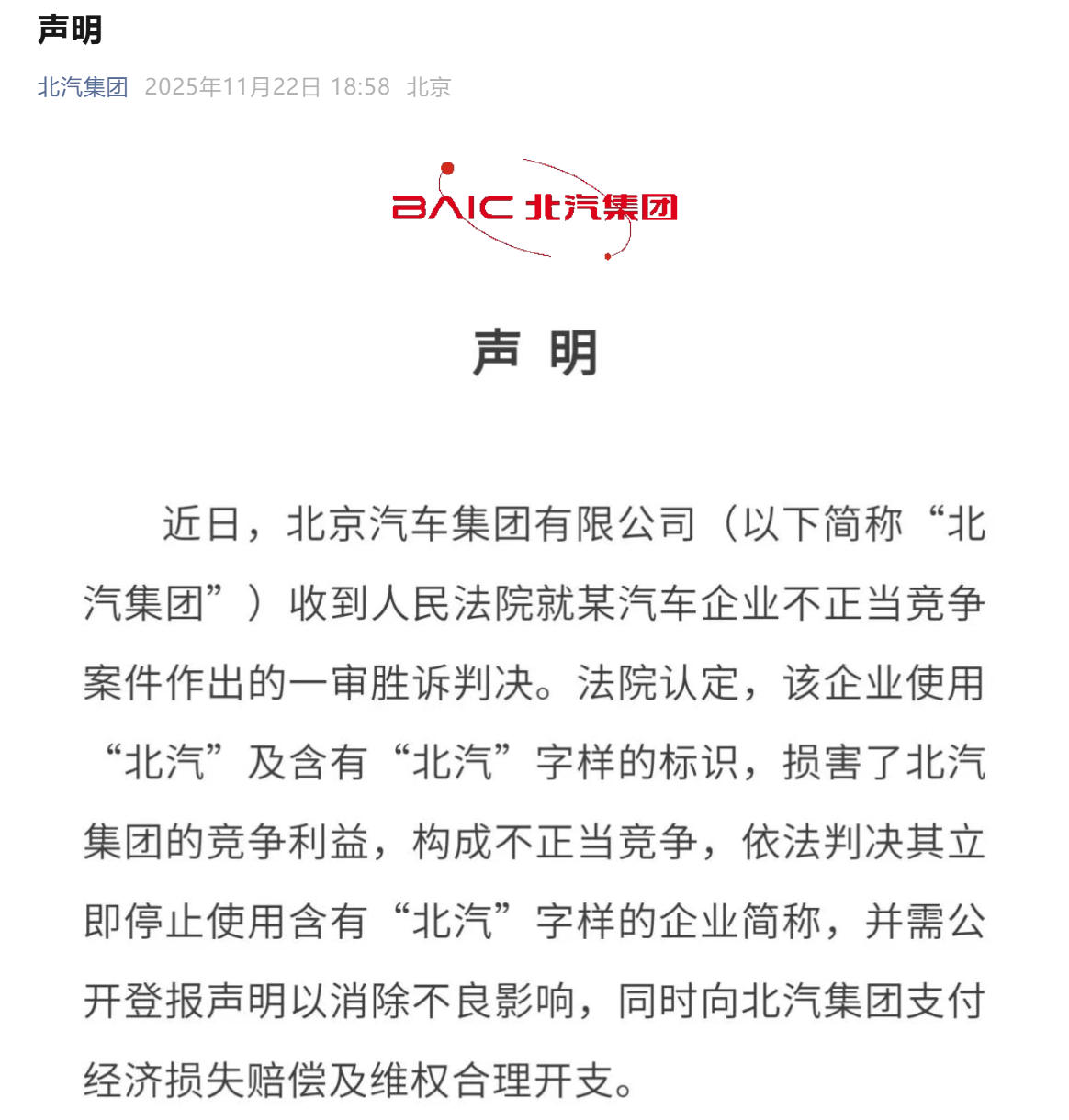 行业动态综述 - 11月最后一周国内车市热点频现,涵盖用户服务、技术研发、战略合作与公司重组等多重动态,勾勒出年末车市的多元图景 [1] 公司法律与品牌维权 - 北汽集团就某汽车企业不正当竞争案件获得一审胜诉判决,法院认定对方使用“北汽”及相关标识损害了北汽集团竞争利益,构成不正当竞争,需立即停止使用并公开声明消除影响 [2] - 北汽集团声明未经许可使用“北汽新能源”、“北汽越野车”、“北汽制造”、“北汽王牌”、“北汽212”等均属严重侵权行为,公司将通过法律手段持续维护合法权益 [4] 智能驾驶技术升级与服务 - 极氪汽车于11月24日开启面向2024款极氪001和极氪009车主的辅助驾驶软硬件系统更换众筹项目,众筹期至2025年12月24日,期间可随时退款 [5] - 2024款极氪001众筹价格为13500元,需3000人参与成功;2024款极氪009众筹价格为18500元,需1500人参与成功 [7] - 此次升级将系统更新为基于NVIDIA DRIVE Thor-U平台开发的千里浩瀚H7辅助驾驶系统,具备NZP全域领航辅助、HPA记忆泊车辅助、G-AES通用障碍物自动紧急转向等功能 [7] - 辅助驾驶企业小马智行与出行服务平台阳光出行达成战略合作,将围绕辅助驾驶出行开展全方位深度合作,共同打造规模化辅助驾驶车队 [8] - 双方将基于小马智行第七代量产辅助驾驶车型组建车队,首批车队于今年落地,并在北京、广州、深圳、上海等城市扩大运营合作,覆盖市中心、机场、火车站等多场景 [10] - 华为乾崑智驾ADS高速L3解决方案已开启多城多车型内测,覆盖北京、上海、广州、深圳等七大核心城市,合作车型包括赛力斯问界M9、江淮尊界S800等四款车型 [19] - 该解决方案旨在构建未来全场景服务生态,涵盖停车缴费无感通行、自动充电、便捷洗车养车服务,但其商用落地依赖于未来法规支持与辅助驾驶车辆能力 [23] 外资企业本土化研发深化 - 大众汽车集团首个德国以外的全流程研发测试中心——大众汽车(中国)科技有限公司(VCTC)位于合肥的全新批次测试车间于11月25日正式启用,标志着其整体扩建工程全面收官 [11] - VCTC合肥研发中心占地约10万平方米,配备超百间先进实验室,覆盖从软硬件开发、电池与动力总成测试到整车级验证的全链条研发环节 [13] - 新测试车间助力整车研发周期缩短约30%,并加快CEA落地及智能座舱、高级驾驶辅助等本土化功能开发,意味着大众在中国已构建完整的端到端研发体系 [13] - 大众方面透露,可模拟极端环境的功能集成测试(FIT)实验室将于2026年中期投入使用,以巩固其在智能网联与电动化领域的研发优势 [13] 充电服务品牌升级与优化 - 小桔充电于11月25日宣布更名为“滴滴充电”,并启用新品牌标语“10个电车车主7个滴滴充电” [14] - 滴滴充电服务网络已覆盖全国超270座城市的62000余座充电站,在多数城市核心区域,用户可在3公里内找到其充电站 [14] - 滴滴充电桩可用率保持在97%以上,并推出“跳枪赔付”服务以解决充电中断痛点,其“极速启动”功能将充电启动平均时长缩短至10秒左右,“加速充”服务平均提升充电速度8% [14] 车企重组与资产盘活 - 上海集度汽车有限公司(品牌为极越汽车)于11月25日公告,已向法院提交预重整申请并于11月21日获受理,法院指定北京市中伦(上海)律师事务所担任临时管理人 [15] - 集度汽车启动预重整旨在引入新战略投资人、盘活现有资产资源、维护资产价值并保障用户售后权益,后续将在临时管理人监督下维持核心业务平稳运转 [18]