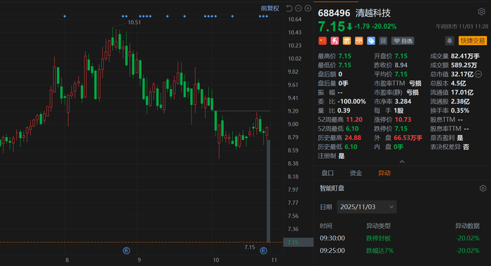 A股异动丨被证监会立案,清越科技20cm跌停,创阶段新低