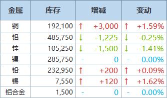 2月10日LME金属库存及注销仓单数据