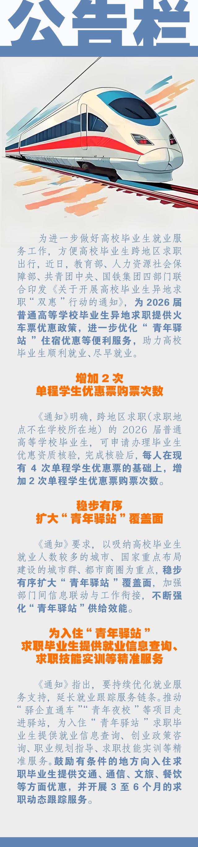公告栏 | 四部门联合发文,为跨地区求职毕业生提供火车票、住宿等优惠便利